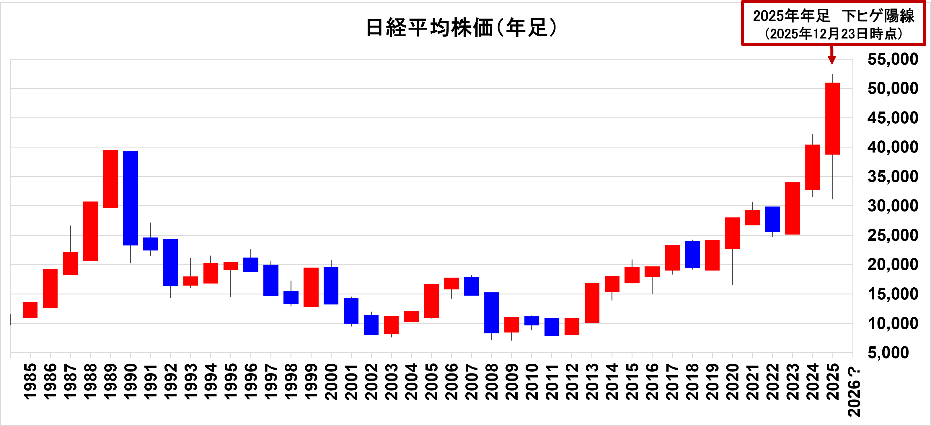 - 日経平均株価年足推移、2025年は12月23日までのデータ