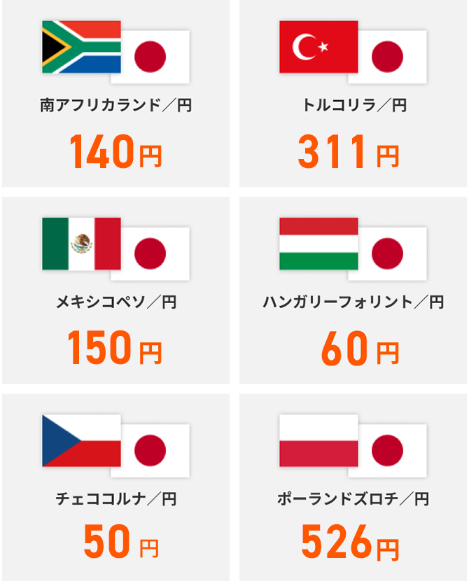 ※高金利の通貨を売り、低金利の通貨を買うとスワップポイントの支払いがあります。