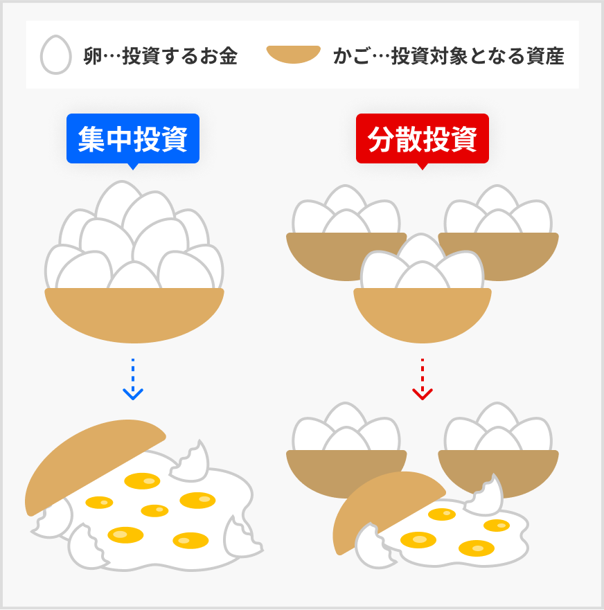 株式や債券、不動産など異なる資産に分散投資することで、値下がりリスクを抑えられます。