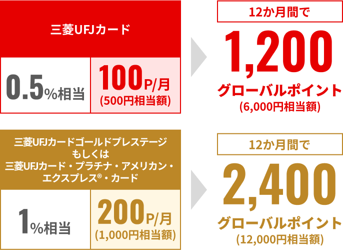 毎月の投資信託積立金額に対して、グローバルポイントが最大1%相当たまります。