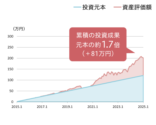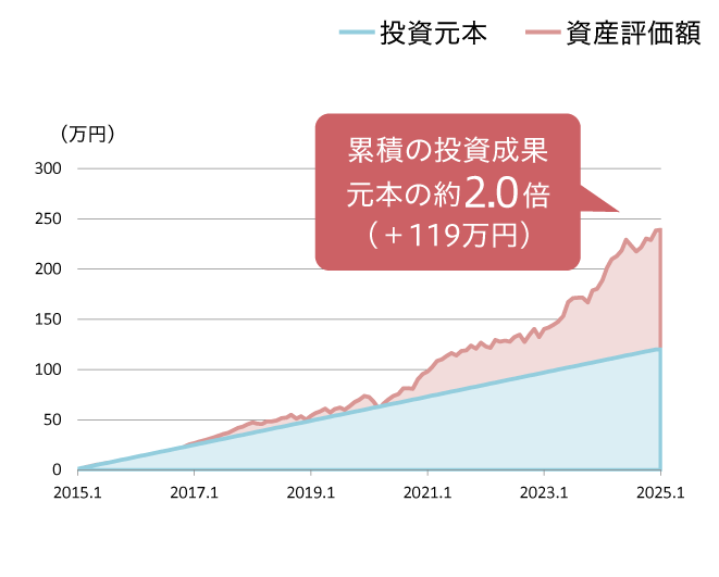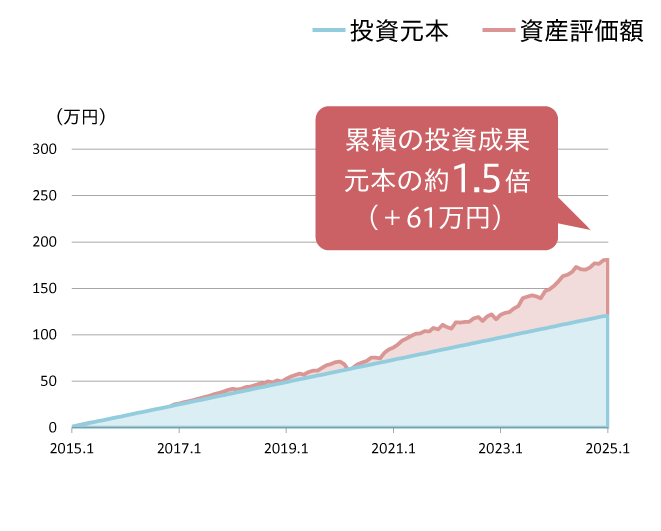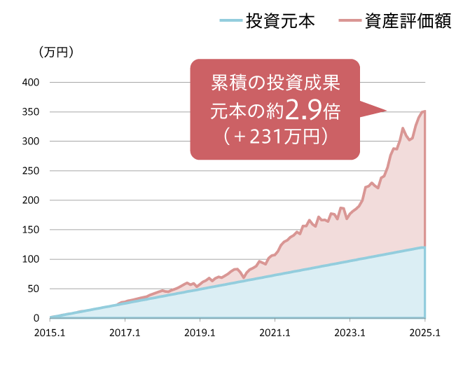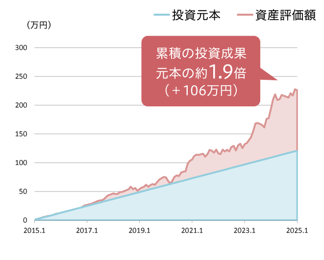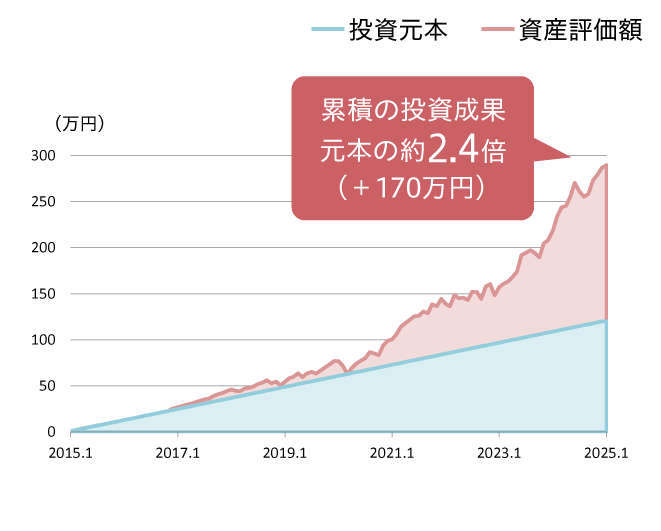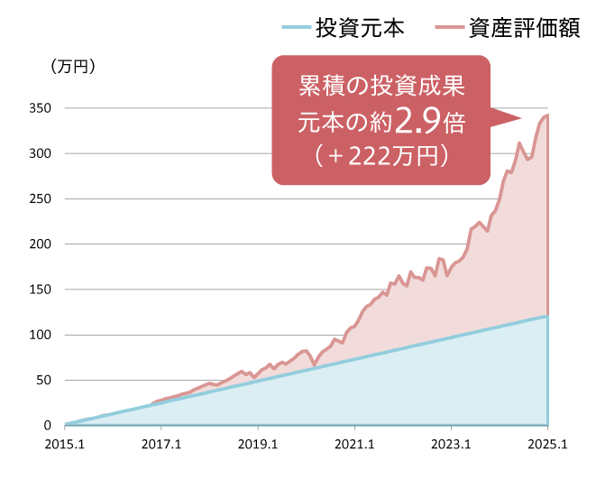 - ※上図はシミュレーションであり、将来の投資成果を示唆・保証するものではありません。また、当ファンドの運用実績ではありません。