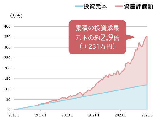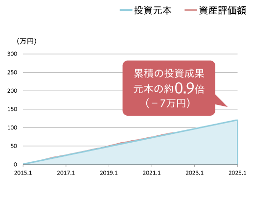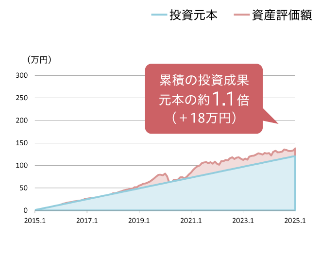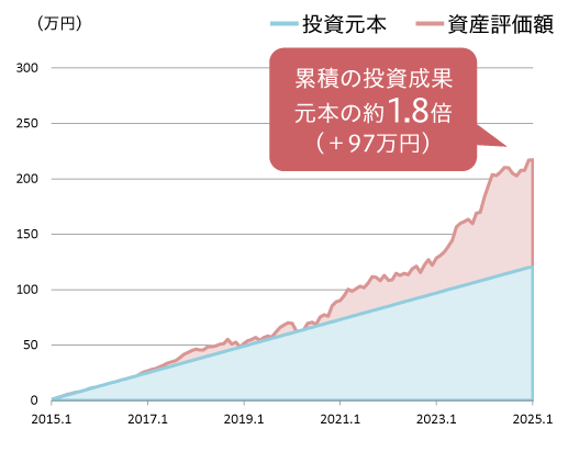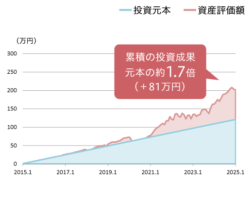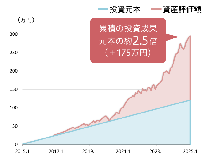 連動対象のインデックスに10年間毎月末1万円(計120万円)のつみたて投資をすると