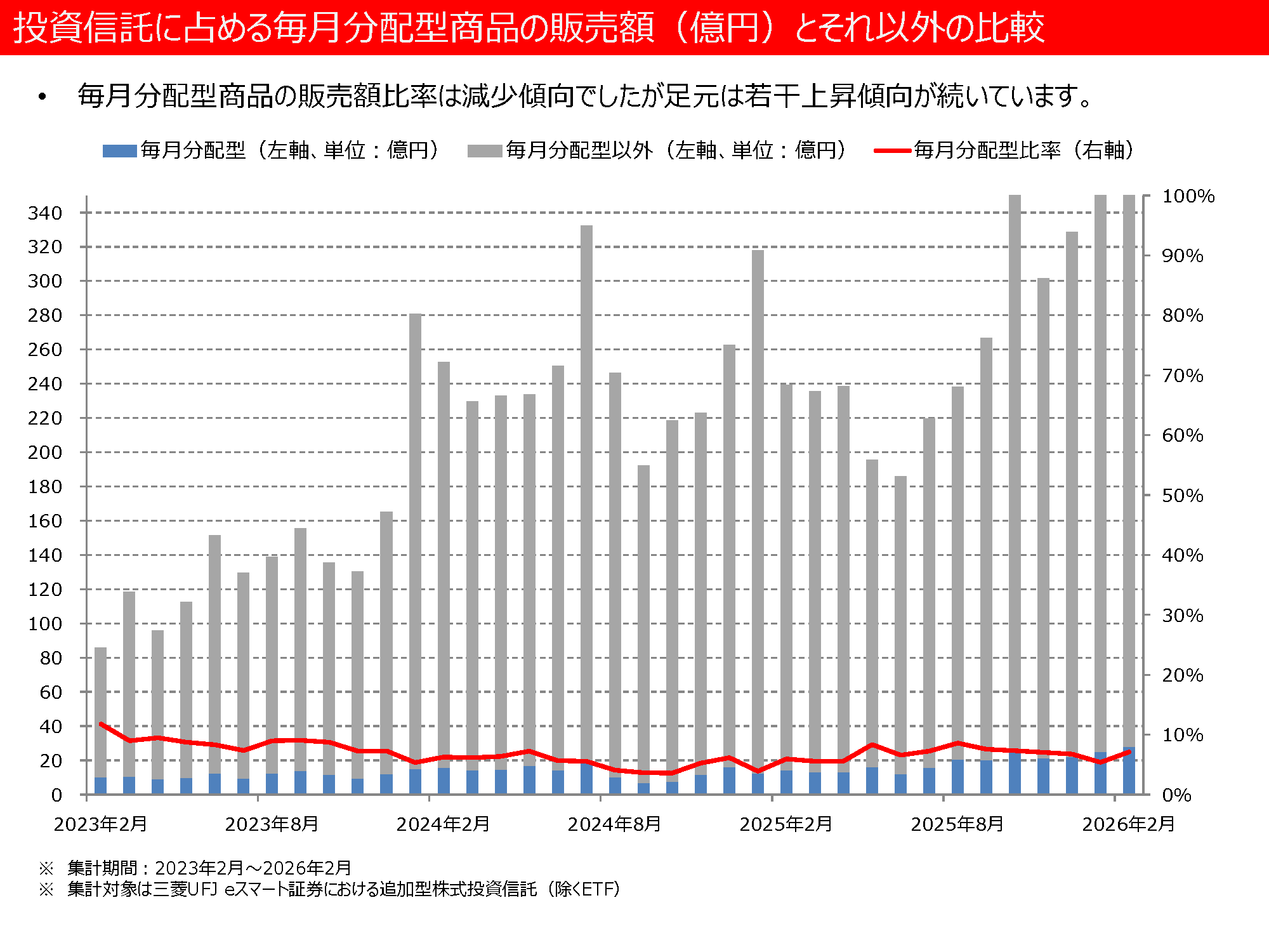 • 投資信託に占める毎月分配型商品の販売額(億円)とそれ以外の比較