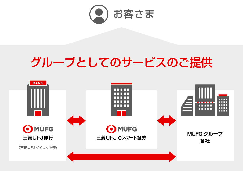 また、当社を含むMUFGグループ各社は、インターネットバンキングの「三菱UFJダイレクト」を中心に、お客さまのお役に立つ各種サービスを準備しています。今後、各サービスの内容や開始時期などが決まり次第、適宜、ご案内します。