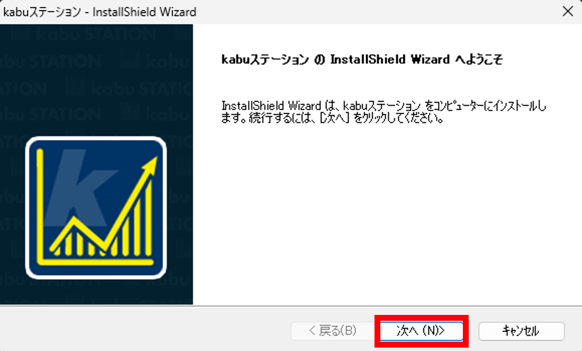 「kabuStation_Installer」のファイルをダブルクリックすると、インストール画面が立ち上がります。