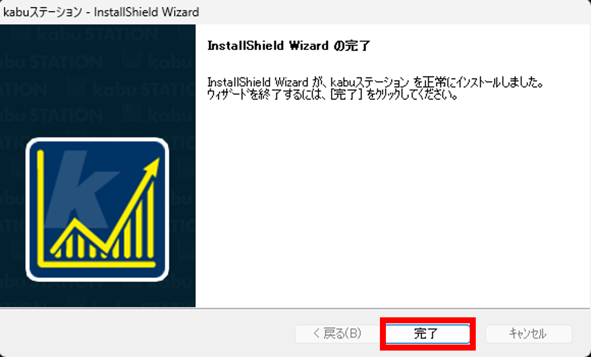 インストール完了後、「完了」をクリックして画面を閉じます。