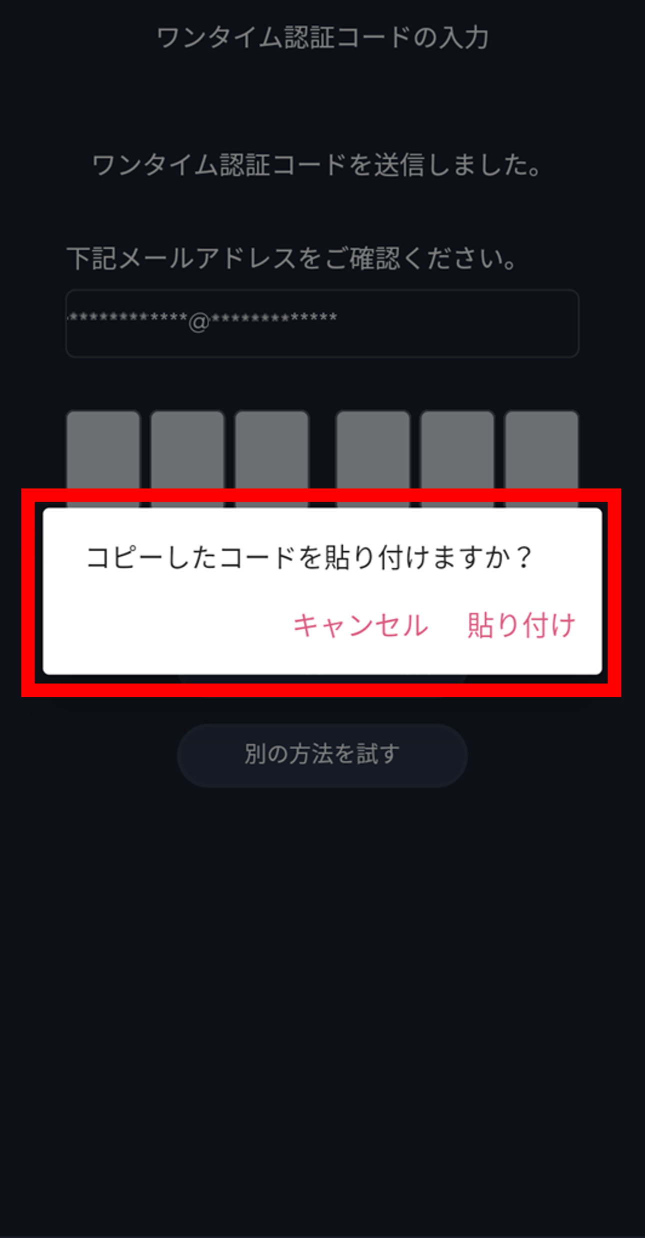 ワンタイム認証コード入力画面の貼付への対応