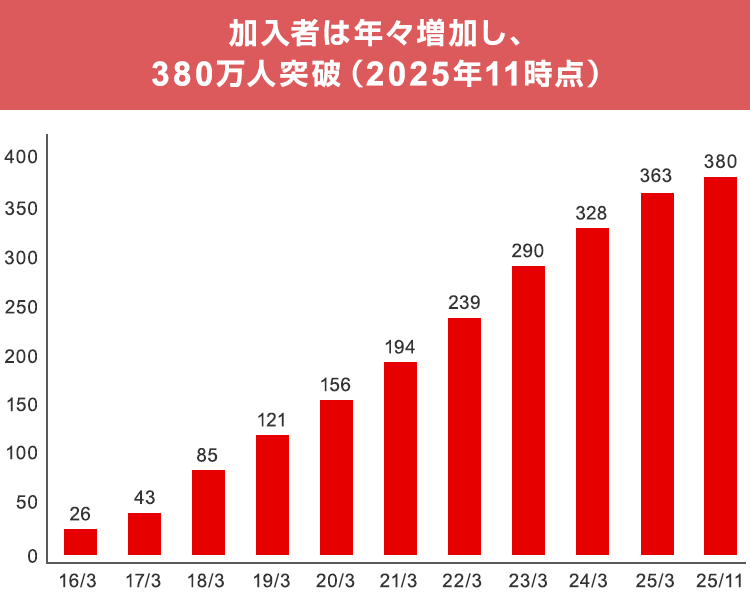iDeCoは、掛け金が全額所得控除、運用益も非課税、給付を受け取る際にも税制優遇措置があるほか、転職・退職しても継続して加入できるなどのメリットがあり、より豊かな老後生活に向けた資産形成が可能になる制度です。「資産運用立国」構想や、家計金融資産の形成促進策により、自助努力型年金制度の重要性は今後一層高まることが予想され、加入手続きの簡素化も進む中、加入者は年々増加傾向にあります。さらに2027年1月には、加入対象の拡大や掛金上限の引き上げなど、iDeCo制度の利便性向上が予定されており、資産形成への関心が一層高まることが見込まれています。