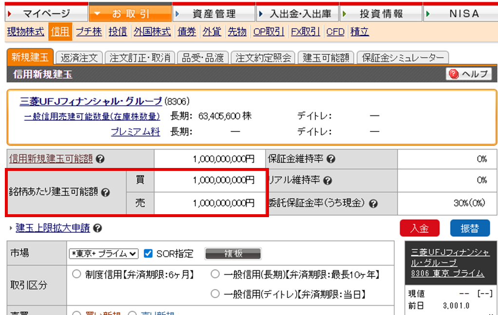 銘柄あたり建玉可能額は、個別銘柄ごとに信用取引の新規発注ができる上限額です。