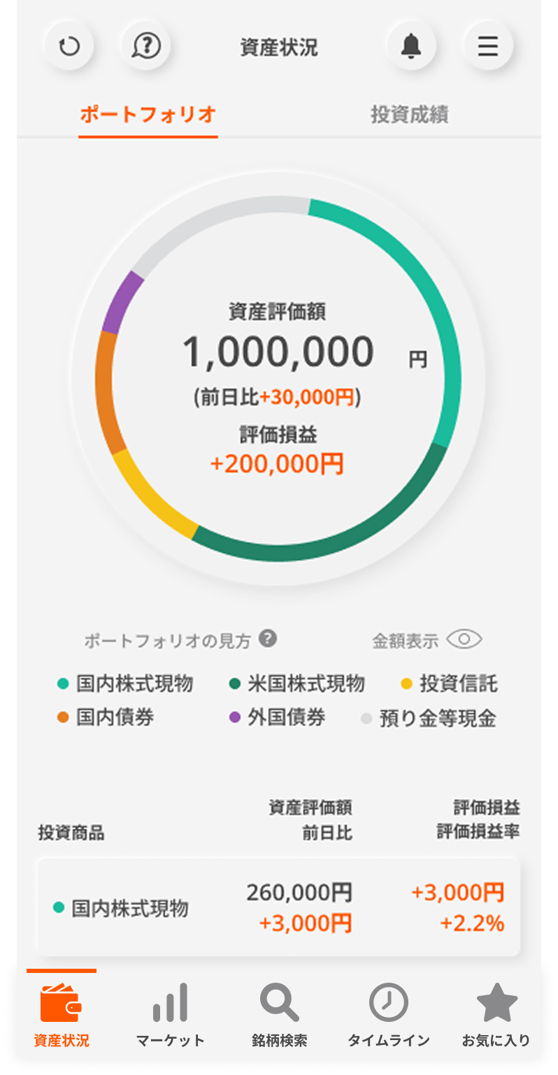 資産状況画面の主な機能
