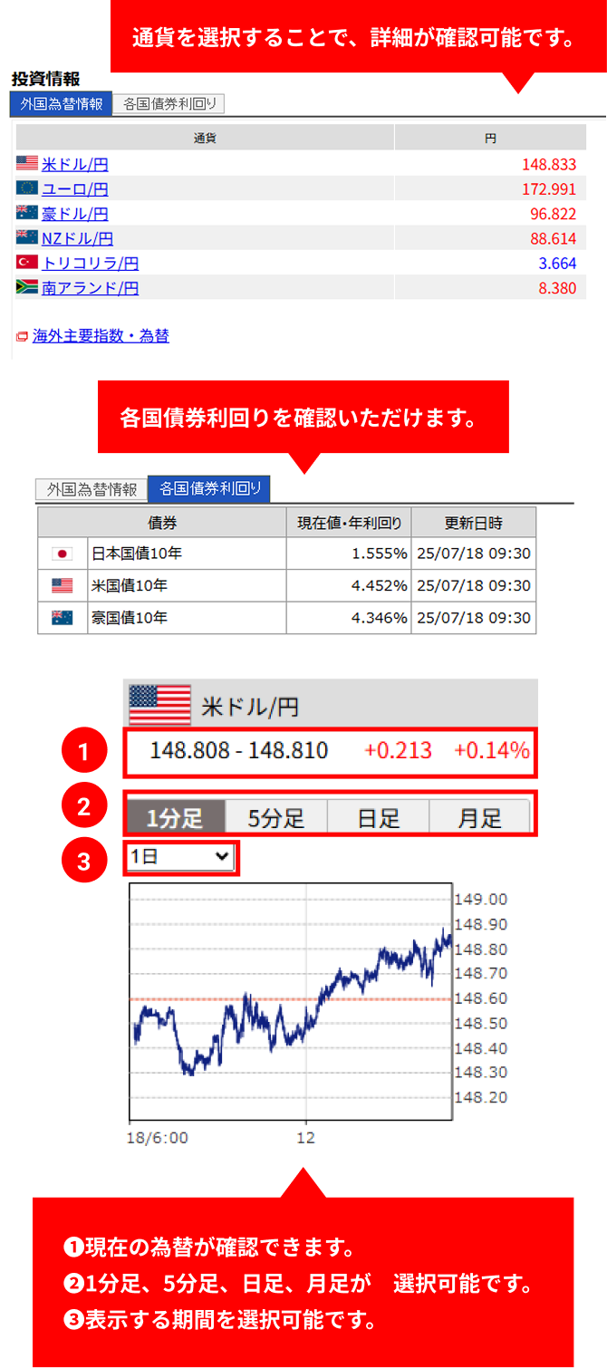 円貨受渡金額は適用為替レートを用いて計算されます。適用為替レートは15:30(トルコリラ:13:00、南アフリカランド:14:30)頃に当社が定める実勢為替レートに基づき、為替スプレッドを加減して決定いたします。