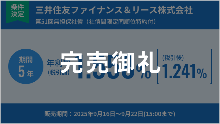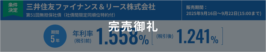 | 銘柄名 | 第51回無担保社債 三井住友ファイナンス&リース株式会社 社債間限定同順位特約付 |