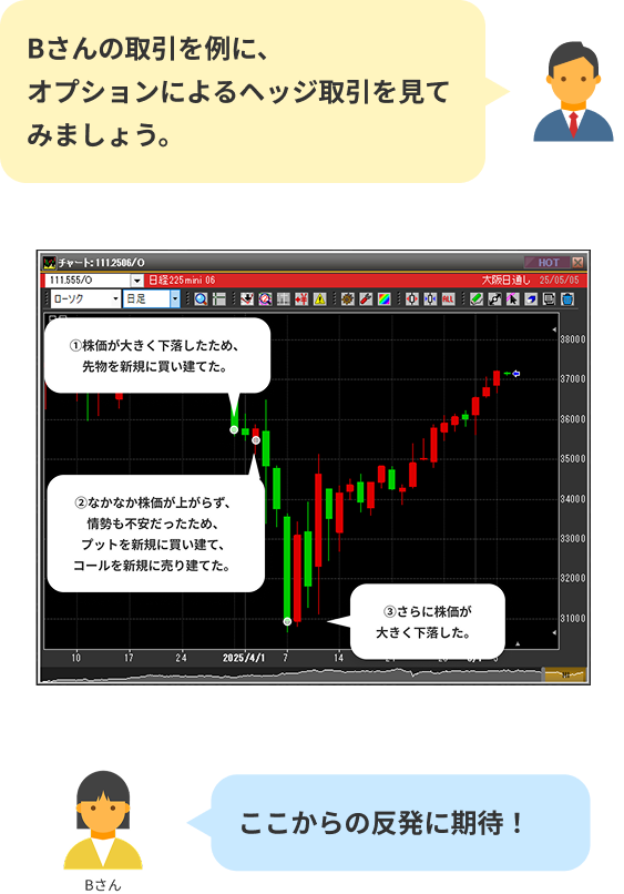 ①Bさんは、株価が大きく下落したため、今後の反発を期待して日経225miniを新規に買い建てた。