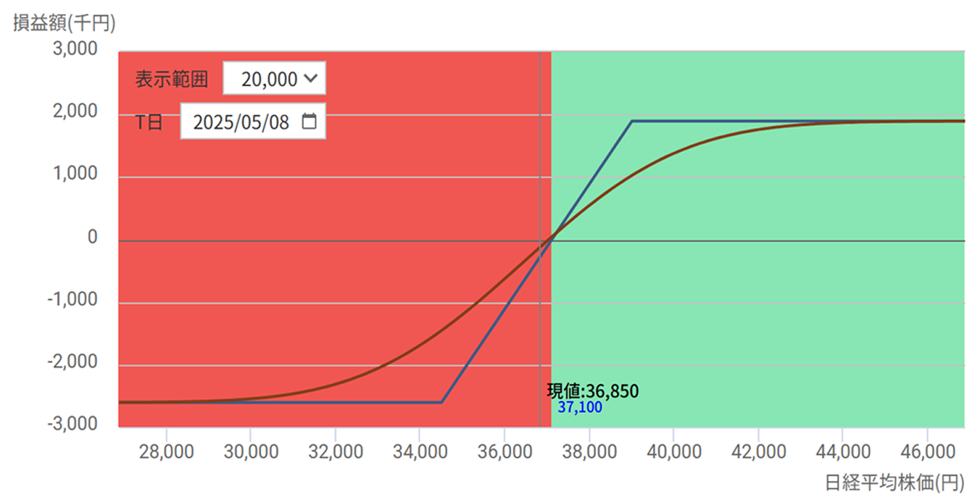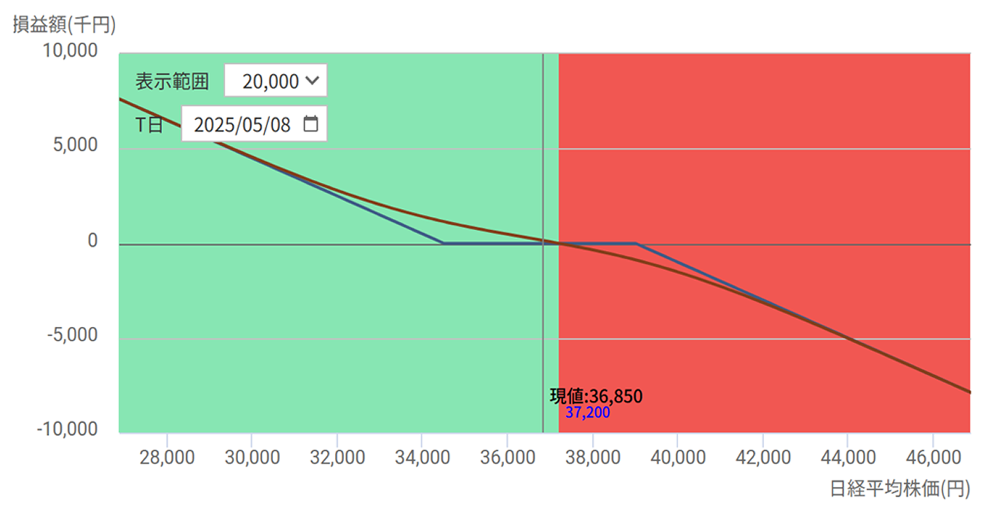 先物やオプションによるヘッジをおこなった際、ヘッジ対象(現物株式、信用取引、先物取引の買建玉)のデルタとのバランスを確認できます。