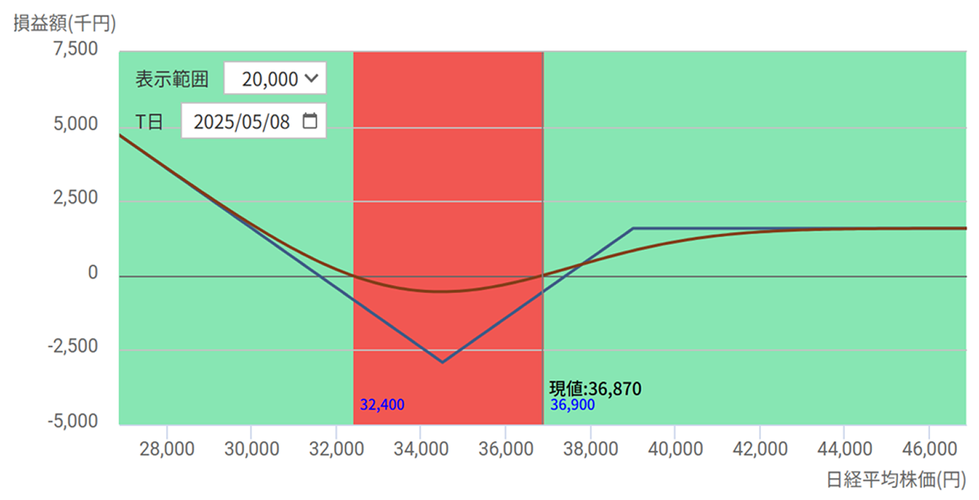 | プットオプション33000 | 買 | 1枚 | 78円 | 2,305円 | 2,305,000円 | 2,227,000円 |