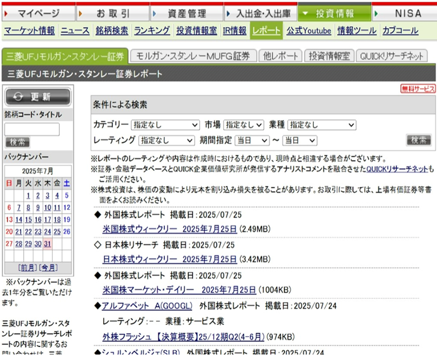 三菱UFJモルガン・スタンレー証券およびモルガン・スタンレーMUFG証券が提供する各種レポートサービスを、口座をお持ちの方限定で無料にてご利用いただけます。