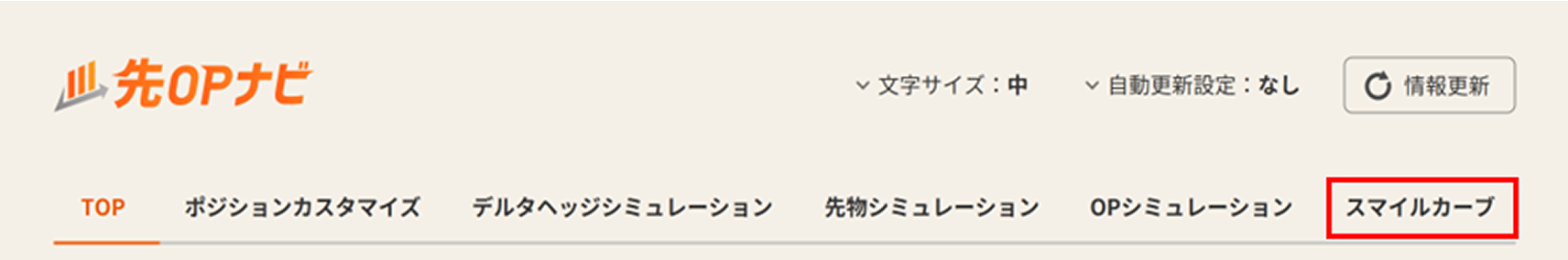 - ※スマイルカーブは、「先OPナビ」の「情報更新」ボタンの押下、または「自動更新設定」で指定された時間に従って更新されます。ご確認の際は、最終更新時刻にご注意ください。