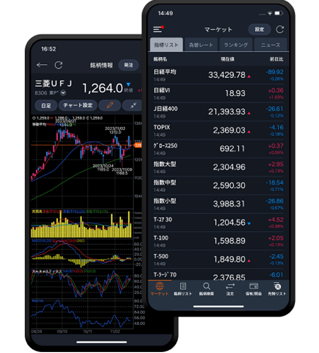 株価、チャート、ニュースから発注まで全てが完結する三菱UFJ eスマート証券自慢の高機能トレーディングツール。