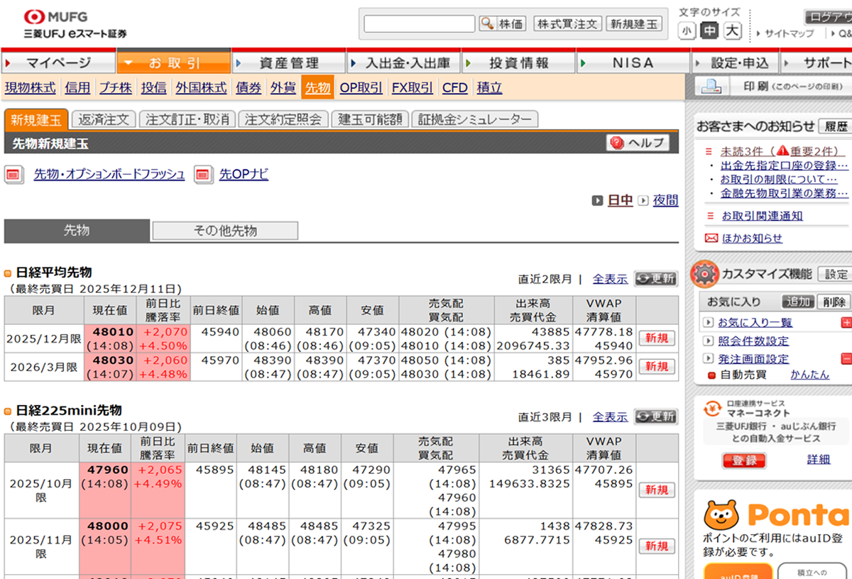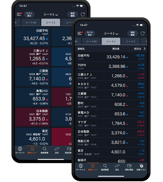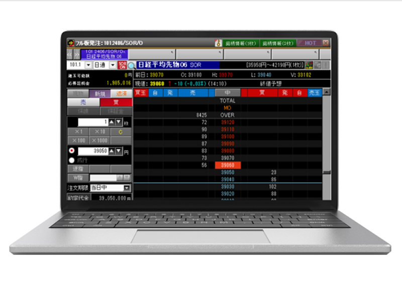 リアルタイム価格や建玉、出来高、VWAPなどの指標を一目で確認可能。値動きの激しい相場でもタイムロスなく判断できます。 証拠金シミュレーターや先OPナビなど、分析・資金管理サポート機能も充実!