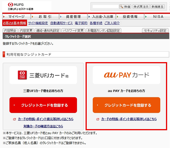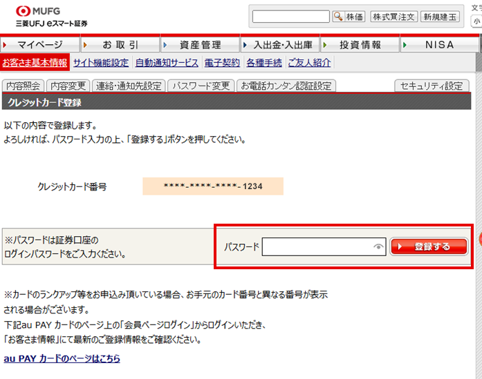 au PAY カードの登録は証券口座に登録されているau IDに紐づく情報をauフィナンシャルサービスに照会をかけるので、