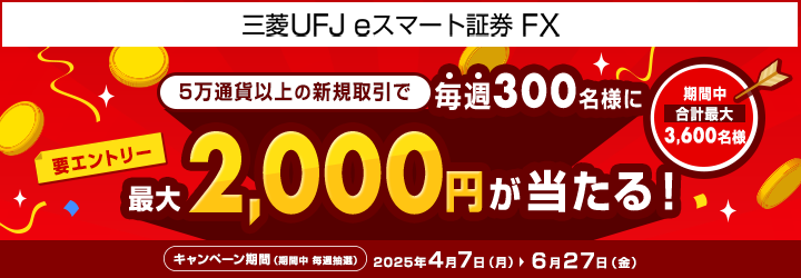 【三菱UFJ eスマート証券 FX】デビューを応援!FX新規口座開設+お取引で現金最大100万円キャッシュバック!