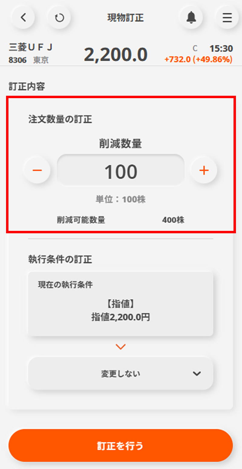 - 「注文訂正・取消」画面に表示されないご注文は、訂正・取消ができません。