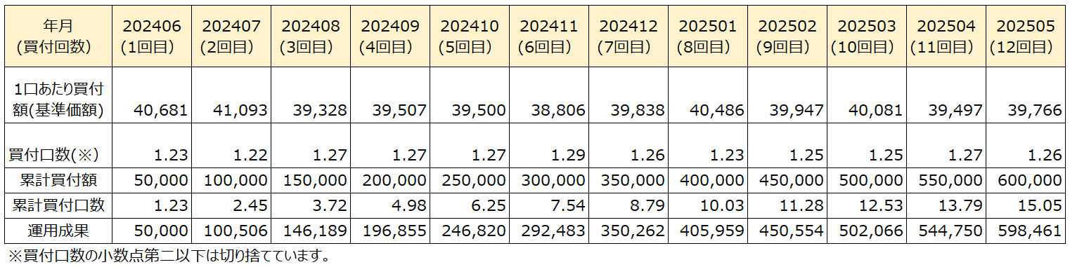 基準価額が上昇している局面では積立額に対して少ない口数が取得され、反対に、基準価額が低下している局面では、同じ積立額でより多くの口数を購入しています。結果として平均購入価格が下がり、一括投資に比べて損失を抑えられているということが確認されました。
