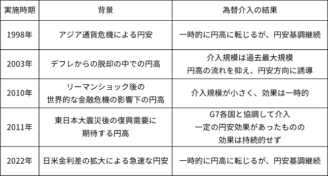 日銀が実施した過去の為替介入の事例をご紹介します。