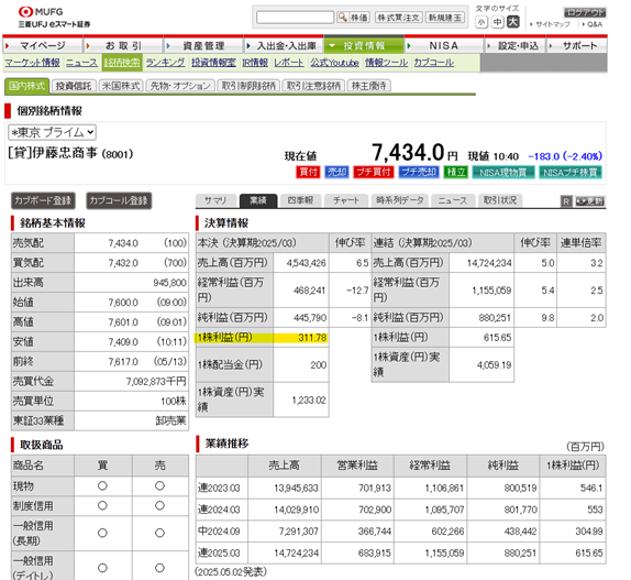 ※画像は三菱UFJ eスマート証券の『個別銘柄情報』より抜粋