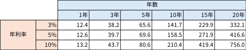 ※積立額は年間12万円として、1年複利で計算。小数点以下第2位を四捨五入。
