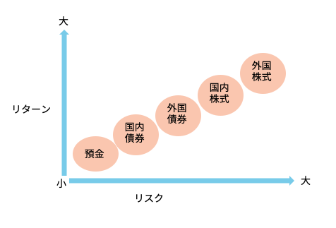 まず、どのような資産に投資をするかで、リスクとリターンの大きさは異なります。