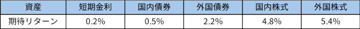 年金積立金の管理・運用を行っている「年金積立金管理運用独立行政法人(GPIF)」では運用にあたり、資産ごとの期待リターンを次のように設定しています。
