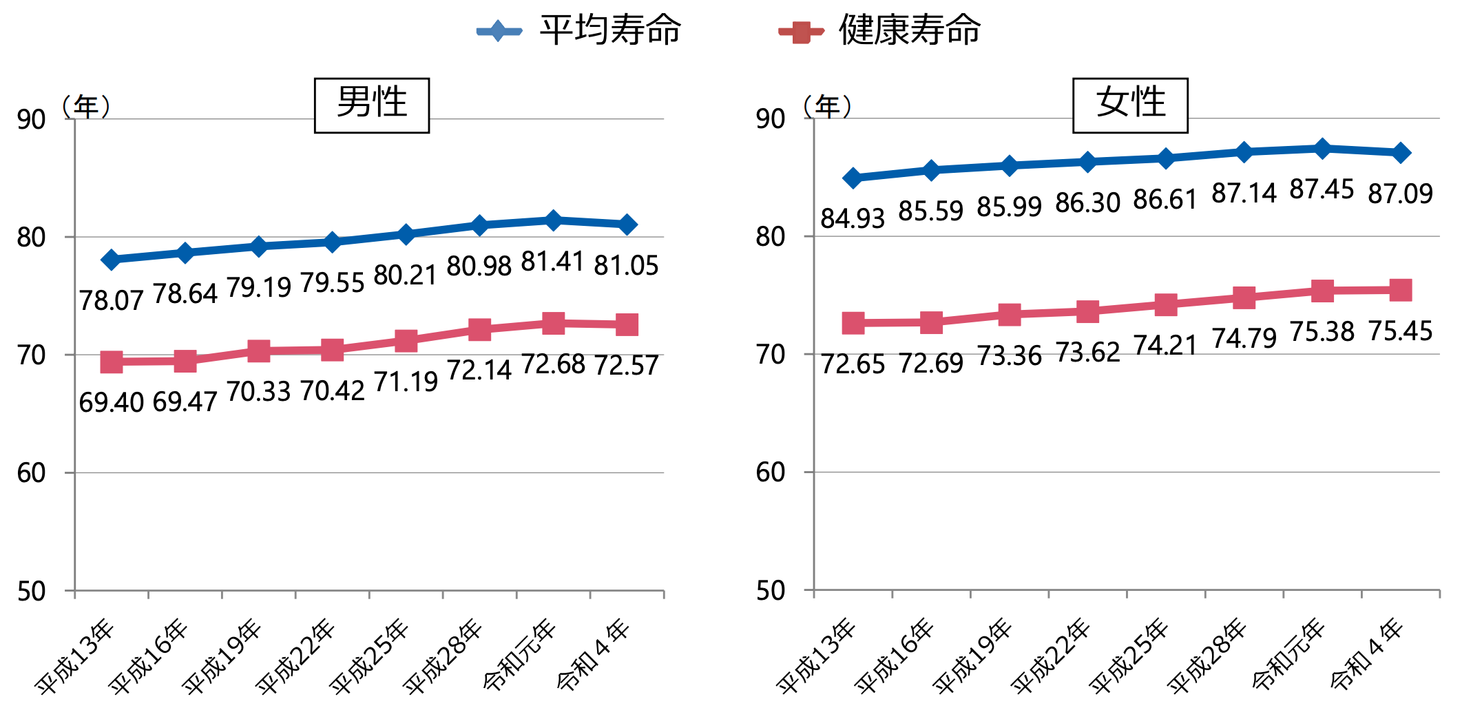 <健康寿命の推移>
