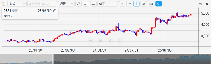 三菱UFJ eスマート証券のチャートツールEVERチャートで作成
