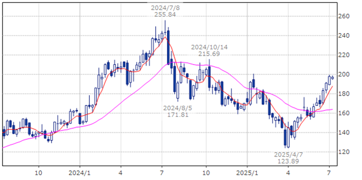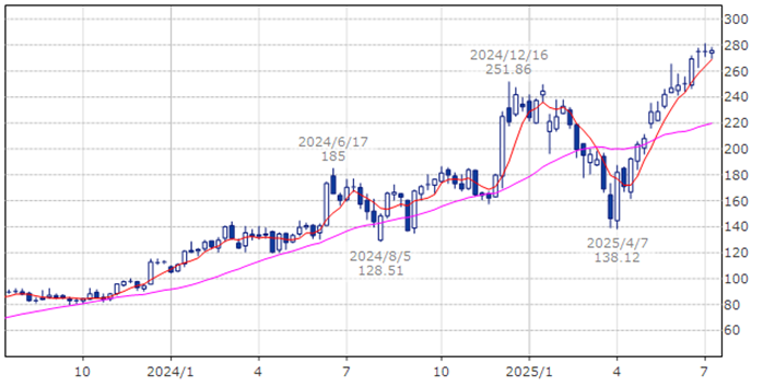 1月に中国スタートアップであるディープシークが先端でない半導体を使った生成AIを登場させた「ディープシーク・ショック」や2月にAIデータセンターの設備投資が鈍化するとの懸念が浮上し、株価が大幅な調整局面となりました。
