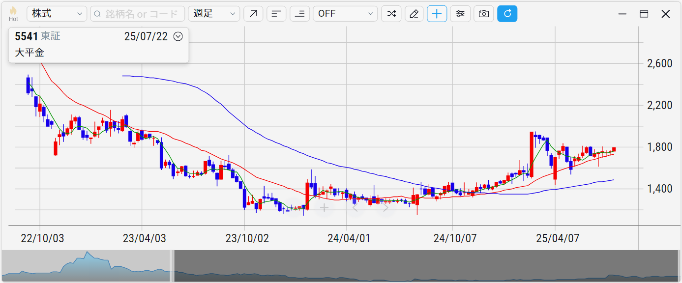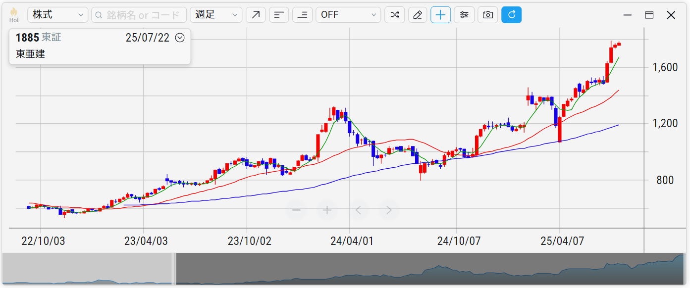 三菱UFJ eスマート証券のチャートツールEVERチャートで作成