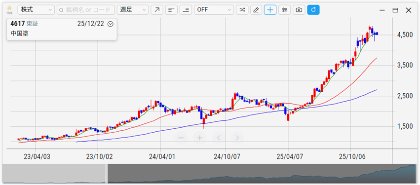 三菱UFJ eスマート証券のチャートツールEVERチャートで作成