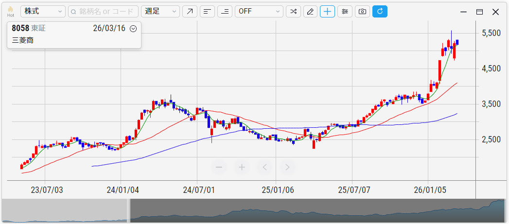 このほかの商社では三井物産(8031)10.4%、伊藤忠(8001)10.1%、丸紅(8002)9.8%、住友商事(8053)9.7%となっている。5社合計の保有時価総額は2025年末で354億ドル(約5兆5,000億円)と、前年末からは約5割増えた。