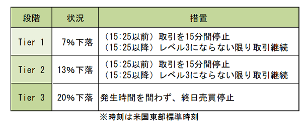 <S&P500における段階制(ティア制)のサーキットブレーカー>