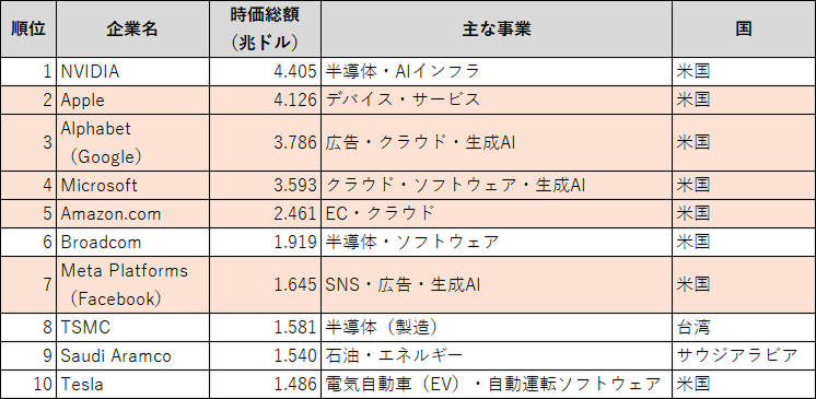 ※出所:CompaniesMarketCap.comをもとに筆者作成(参照日2025年12月11日)