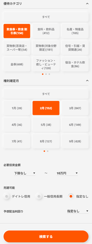 ご紹介する銘柄は、「 優待銘柄検索 優待銘柄検索」にて次の条件で抽出したものです。(※2026年1月15日終値基準で抽出しています。)