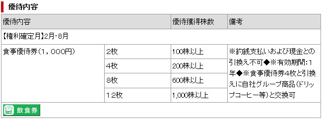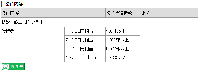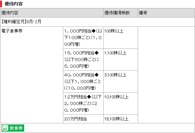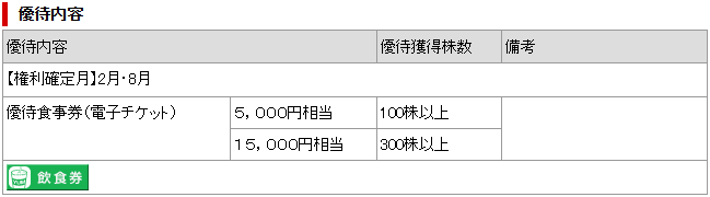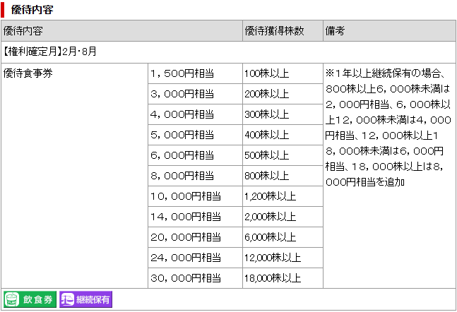 外食株主優待の定番銘柄として個人投資家から高い人気があると言えるでしょう。