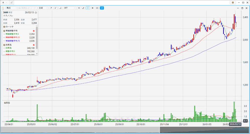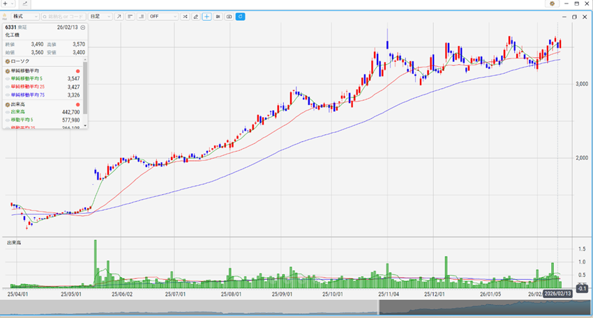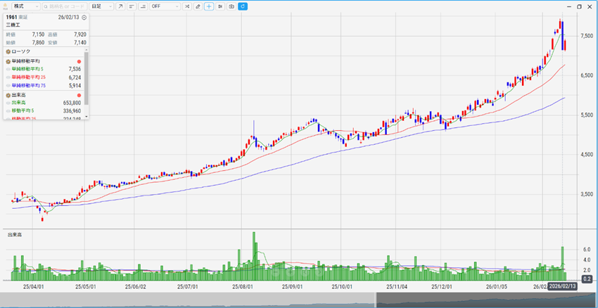 ※抽出したデータは2026年2月時点(2月13日終値まで)の情報に基づきます。また、株価推移の画像は、三菱UFJ eスマート証券のチャートツール「EVERチャート」より抜粋しています。