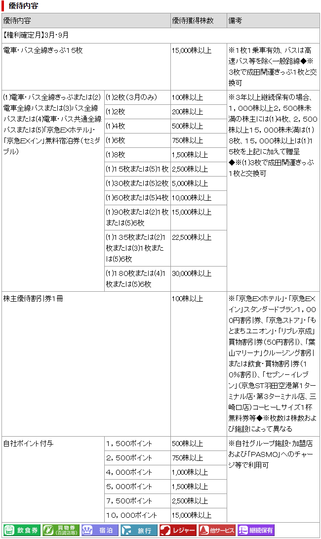 株主優待では、京急グループ施設で利用できる株主優待割引券に加えて、電車・バス全線で使えるきっぷを受け取れます。