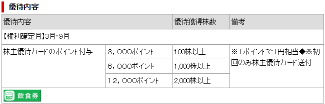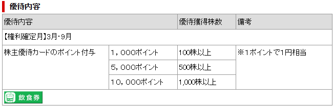 株主優待では、グループ店舗で利用できる優待ポイント を受け取ることができます。