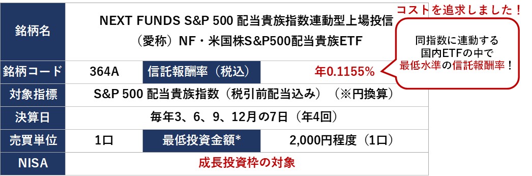 2025年6月11日、野村アセットマネジメントが運用するETFシリーズ「NEXT FUNDS」より、新たにNF・米国株S&P500配当貴族ETF(364A)が東京証券取引所に上場しました。