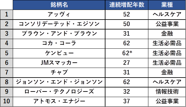 *ケンビューはジョンソン・エンド・ジョンソン(J&J)から分離・独立したため、J&Jと同様の連続増配年数を掲載。