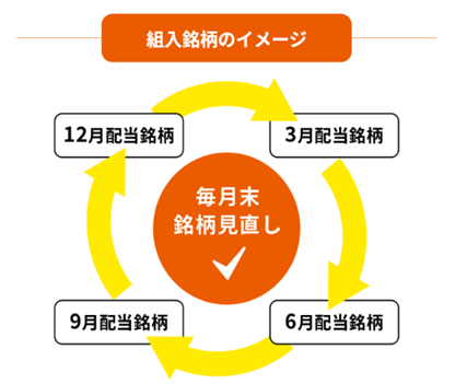※ポートフォリオリバランスを模式的に表現したイメージ図です。3、6、9、12月以外に配当の権利確定する銘柄にも投資します。