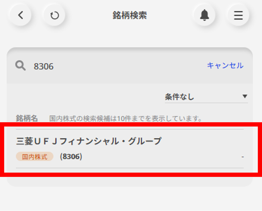 検索結果から取引したい銘柄を選択する。