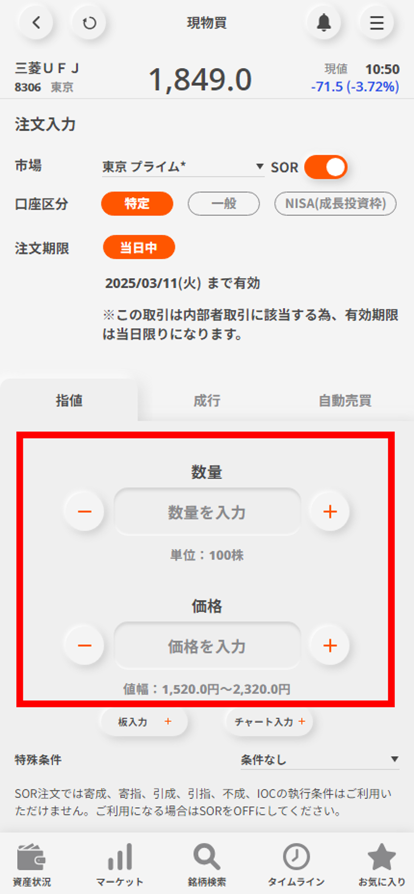 検索結果から取引したい銘柄を選択する。